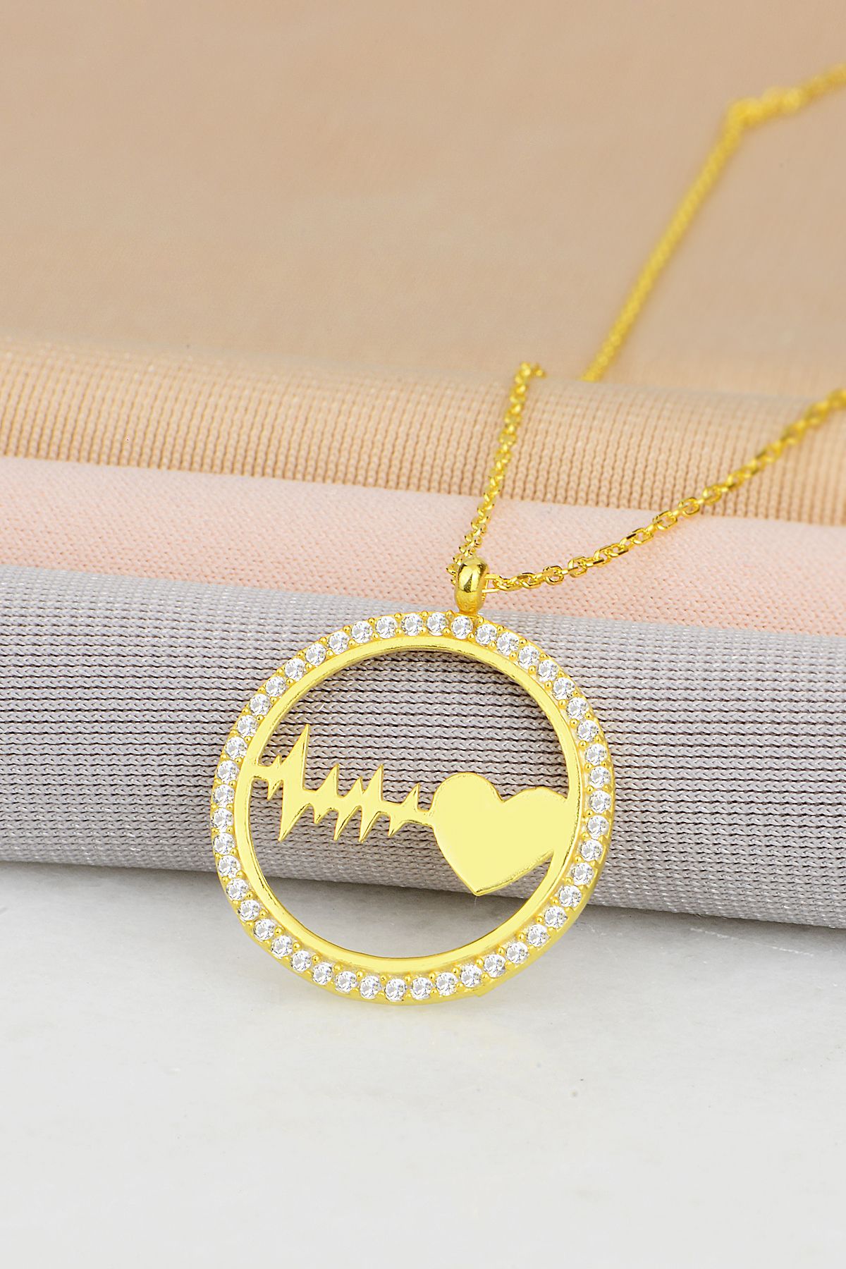 14 Ayar Altın Zincirli Ritim Kalp Kolye – Sertifikalı Işıklı Kutuda